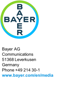 This release may contain forward-looking statements based on current assumptions and forecasts made by Bayer management. Various known and unknown risks, uncertainties and other factors could lead to material differences between the actual future results, financial situation, development or performance of the company and the estimates given here. These factors include those discussed in Bayer’s public reports which are available on the Bayer website at www.bayer.com. The company assumes no liability whatsoever to update these forward-looking statements or to conform them to future events or developments.